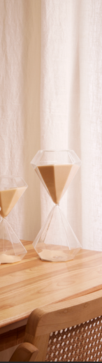 A ampulheta em vidro é mais do que apenas um instrumento para medir o tempo, é uma obra de arte funcional que traz um toque de nostalgia e contemplação ao seu espaço além de ser uma peça de conversa, uma ferramenta de mindfulness e um lembrete visual de que a vida é feita de momentos preciosos. Sua beleza está na simplicidade: duas cápsulas de vidro que abraçam a passagem do tempo com graça e precisão, enquanto a areia cria um espetáculo visual único.