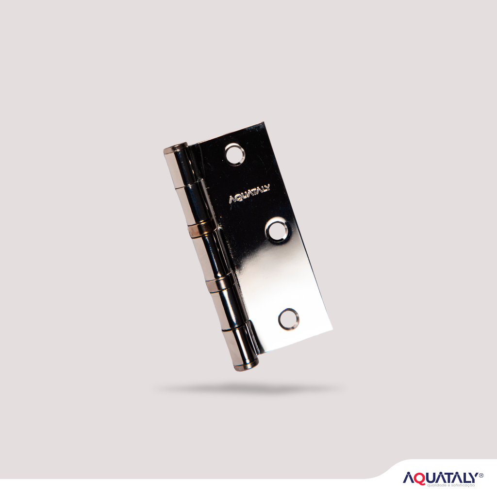 Dobradiça com rolamento em aço, possui acabamento em Cromo polido, Aço escovado, Preto e Antique
