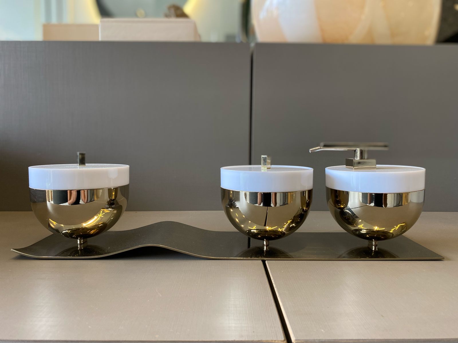 Saboneteira Líquida e Porta Objeto De Balcao New Glam Gold Escovado C/ Cristal Zen