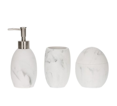 19657 - KIT EM POLIRRESINA PARA BANHEIRO - 3 PÇSPORTA-SABONETE LÍQUIDO 17,5 x 7 COPO 11,5 x 7POTE 12 x 9 cm (AxØ)