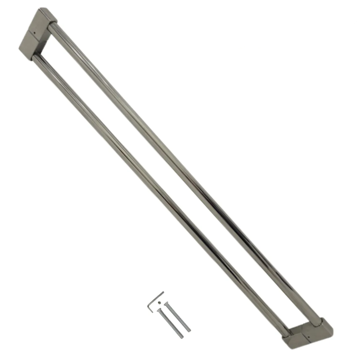 Puxador duplo fabricado todo em aço inox para portas de vidro ou madeira. Indicado para portas de entrada, hall, portões, áreas internas e externas, portas demolição, portas pivotantes, portas de correr, de uso residencial ou comercial. Material altamente resistente a oxidação indicado para ambientes internos e externos.