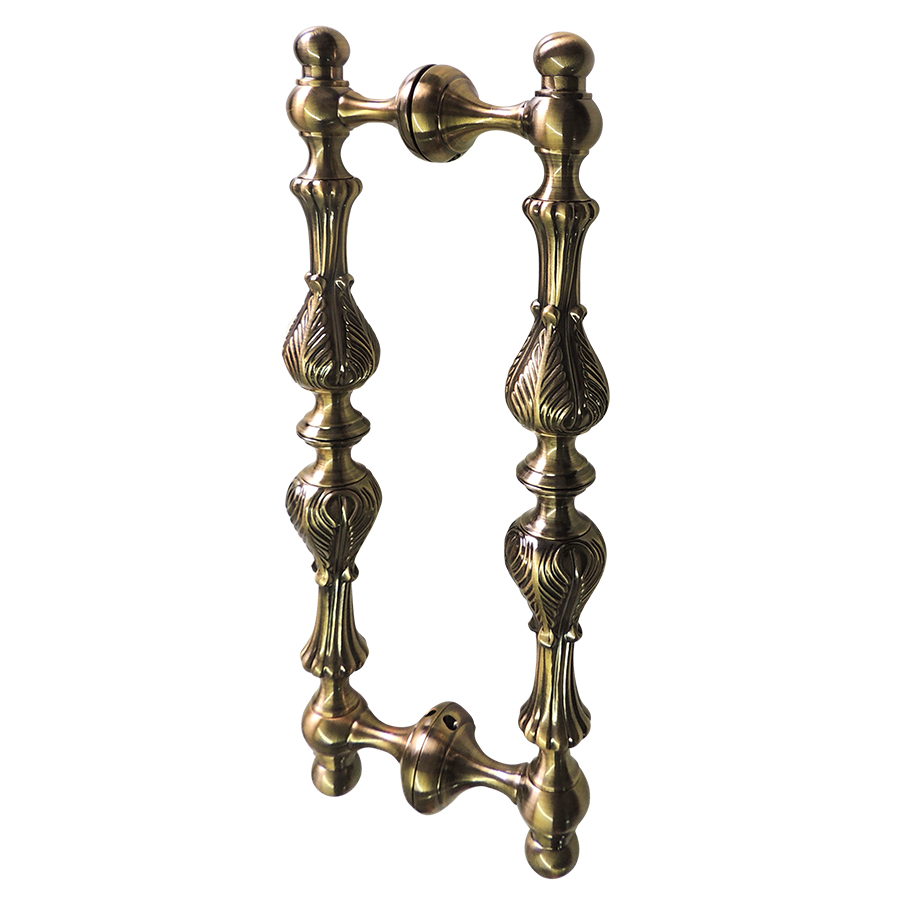 Puxador de porta duplo fabricado em Zamac com acabamento Antique ou Cromado. O Zamac é uma escolha popular para puxadores de porta devido à sua resistência, durabilidade, leveza, versatilidade de design e custo acessível.